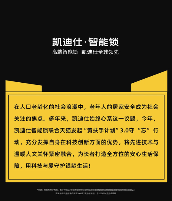 凱迪仕聯(lián)合天貓發(fā)起“黃扶手計(jì)劃”守“忘”行動(dòng),獲“愛(ài)心品牌”榮譽(yù),用科技與愛(ài)守護(hù)銀齡生活!